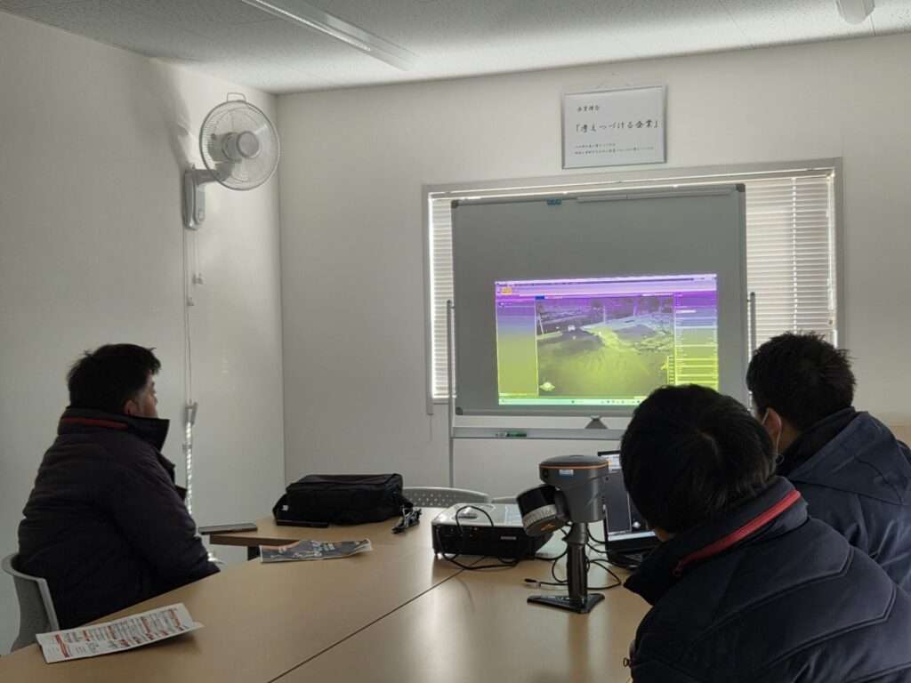 撮影したデータを事務所の会議室でソフトウェアでのデモンストレーション!