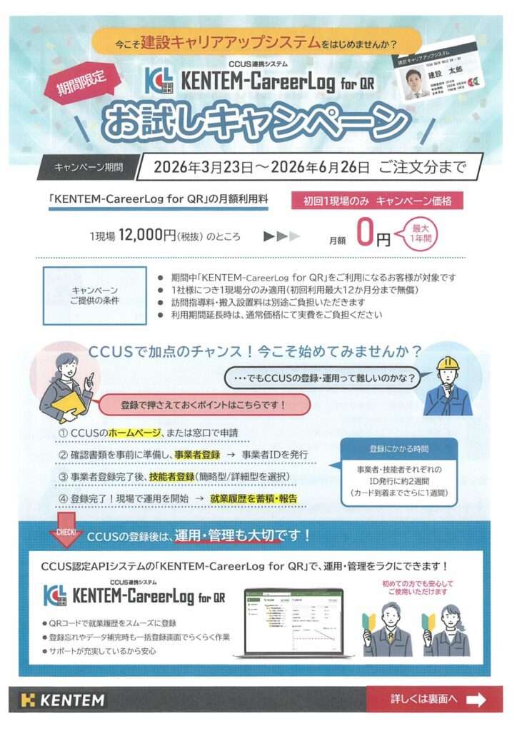 そしてそのシステムと連動してCCUS(ケンセツキャリアアップシステム)に対応できるシステムです!